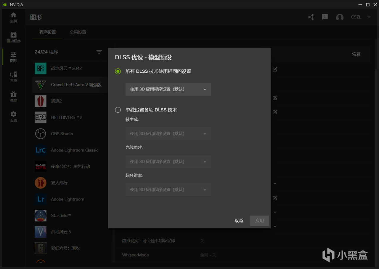 最新版的NVIDIA APP已经可以直接切换GTA5增强版DLSS版本了,所有DLSS技术使用相同的设置里面改到最新或者下面超分辨率设置成预设K都是一样的