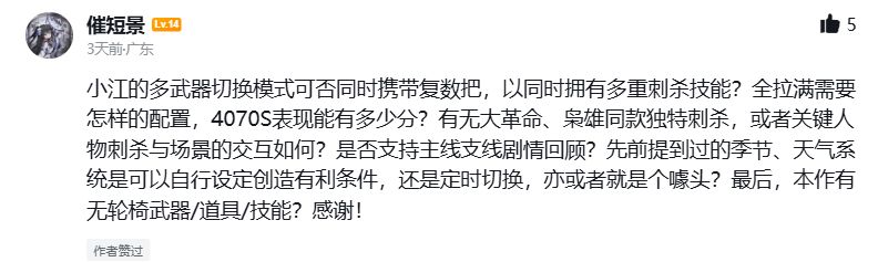 :小江的多武器切换模式可否同时携带复数把,以同时拥有多重刺杀技能?全拉满需要怎样的配置,4070S表现能有多少分?
