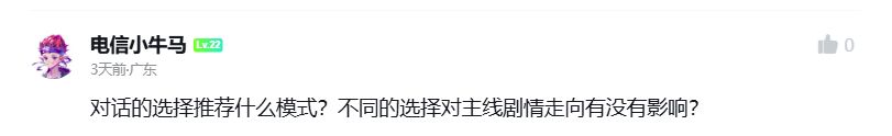 :对话的选择推荐什么模式?不同的选择对主线剧情走向有没有影响?
