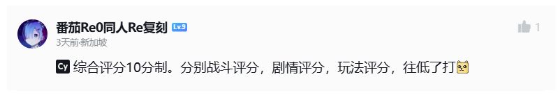 :综合评分10分制。分别战斗评分,剧情评分,玩法评分,往低了打