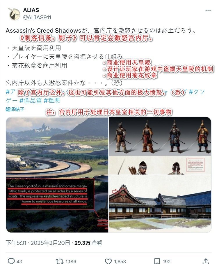 育碧於3月20日針對《刺客信條:影》發佈重要更新補丁,本次調整主要涉及日本文化敏感內容