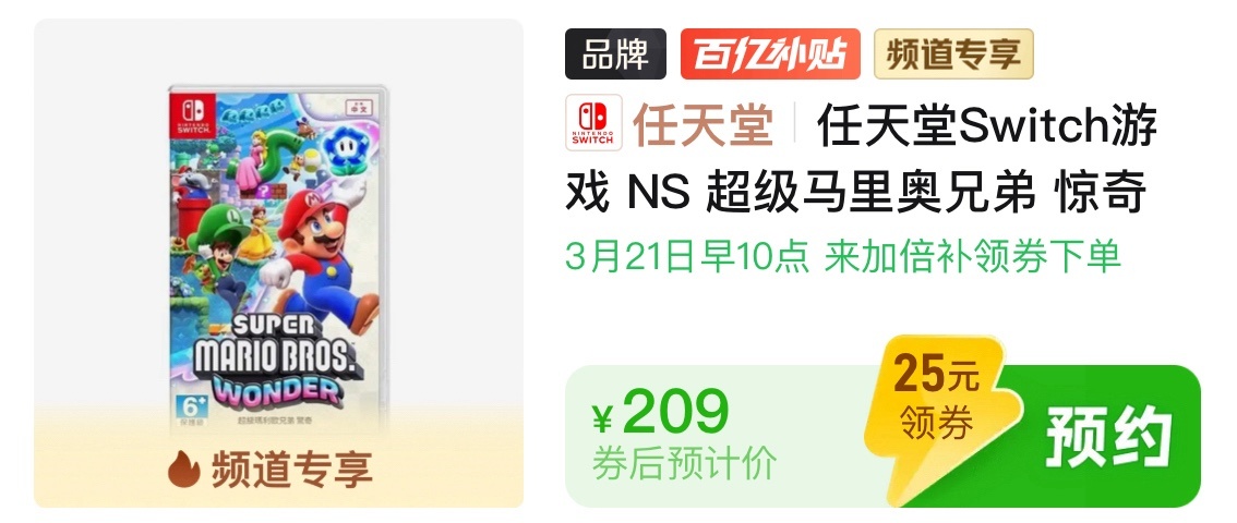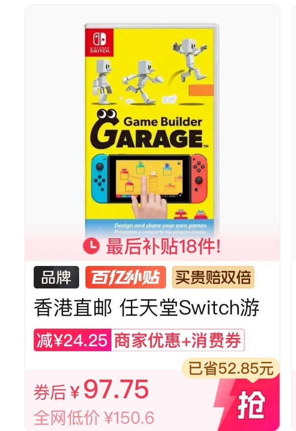 NS平臺非常推薦的運動遊戲,既可以本地雙人也可以聯網遊玩,遊玩時記得在空曠的地方哦。這個價格和日常199使用100-15後的價格差不多,沒券自己用可以,加倍補底價在168。