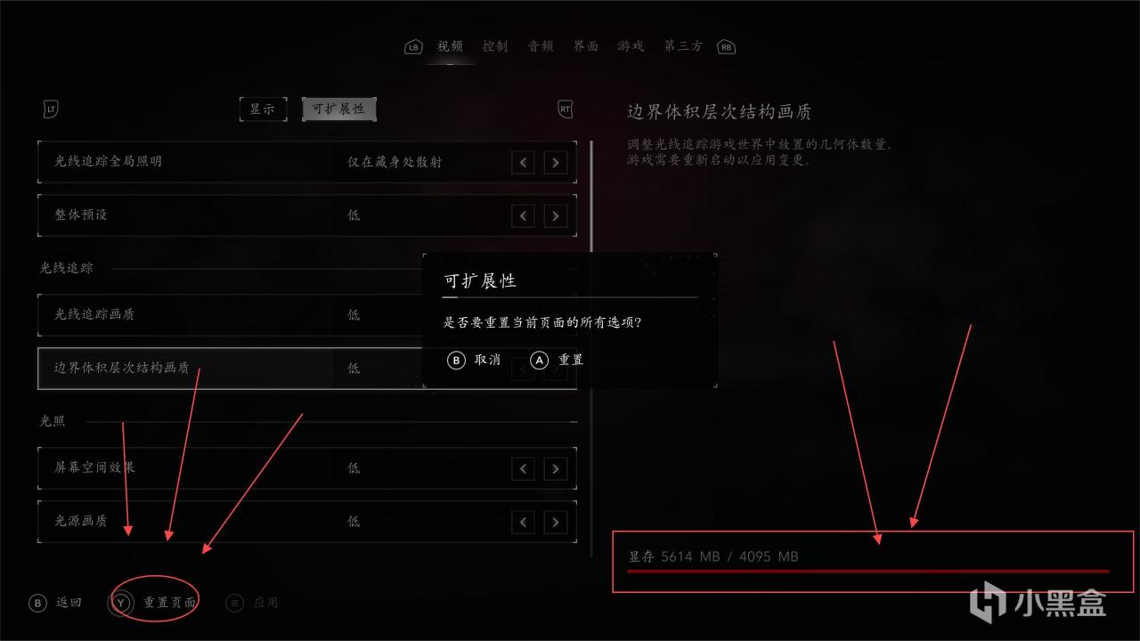 🌹第二步:选择到可扩展性去!记住我现在的显存占用5614MB。然后我点击重置!
