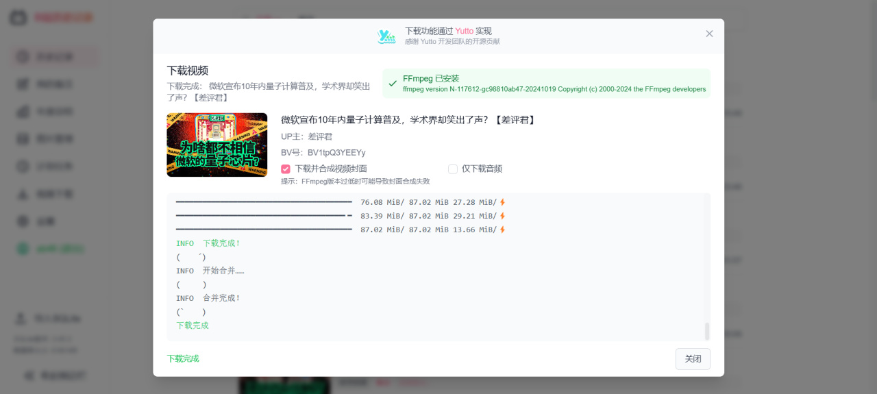 视频下载功能如同你的数字保险箱,基于开源项目Yutto实现了多格式、多清晰度下载方案。当你在深夜发现某个即将下架的教学视频时,可以下载下来,避免视频失效