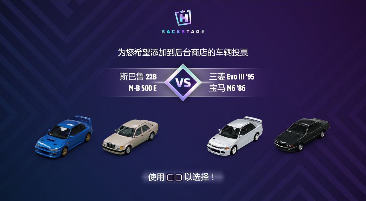 根據人氣投票結果,後臺每週新增 2 輛限定車輛。預計在嘉年華列表停止更新後,所有活動限定車輛都會加入到後臺。