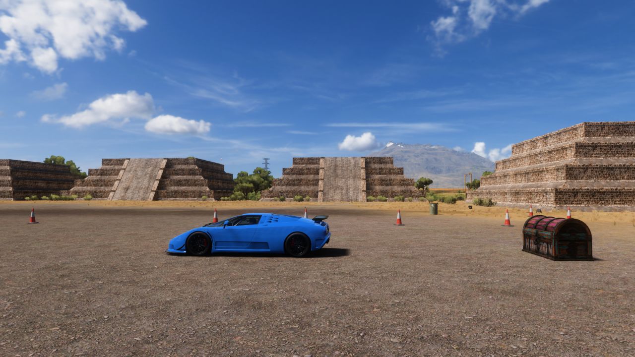 驅車抵達該處,能在跑道盡頭的一處金字塔前找到寶箱,驅車破壞即可。