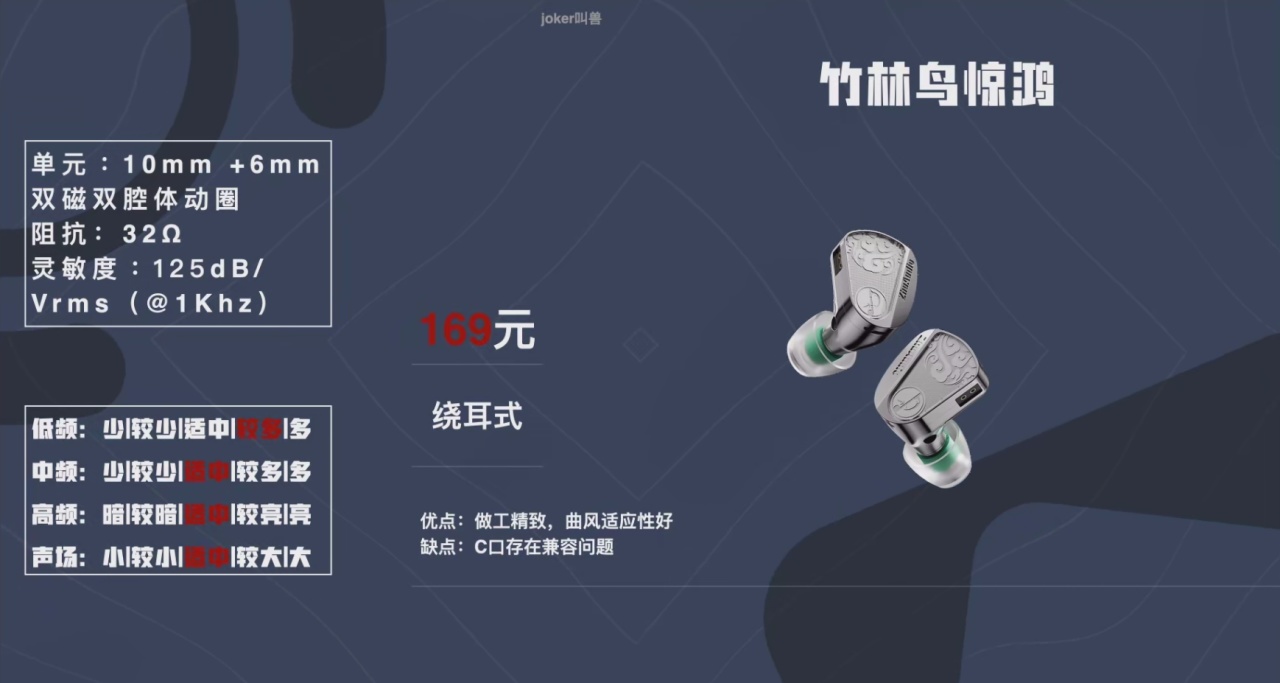 竹二的中低頻雖然沒它們那麼強,但是高頻細節更多一點,聲場更大一點,大家稍微看一下自己喜歡哪種就可以。