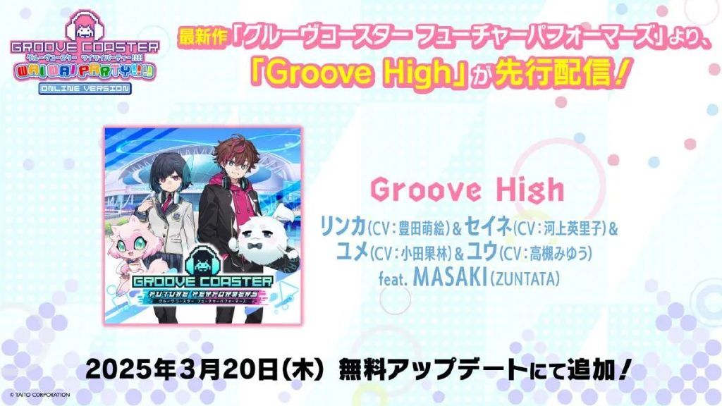 爲今夏推出的新作預熱,節奏過山車舊作《グルーヴコースター ワイワイパーティー!!!!》將於3月20日推出免費歌曲Groove High更新。