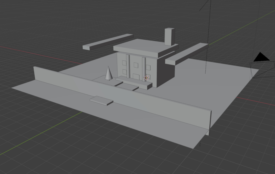 嗯,確實還不錯,有門、窗、樹甚至煙囪之類的東西。就是旁邊飛了兩根橫樑不知道是做什麼的。。