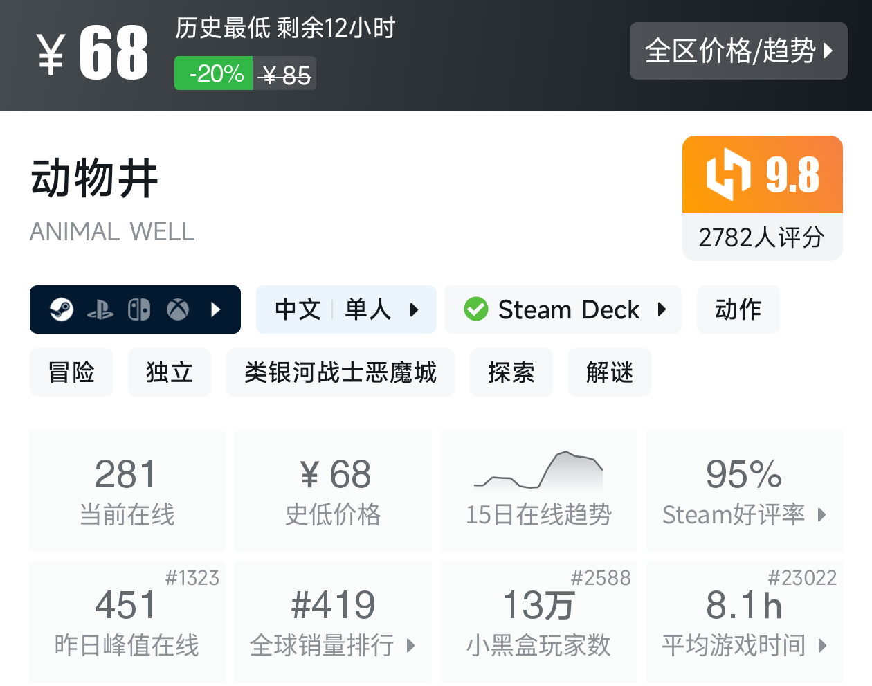 同時遊戲有着獨特的解謎機制,通過動物的能力和環境互動,來解開謎題,還有着獨特深邃的世界觀,每一處都在講述着不同的故事。