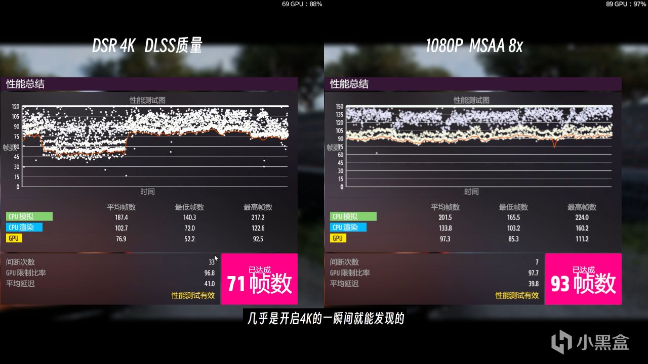 同畫質DSR4K開啓DLSS和1080原生幀數對比