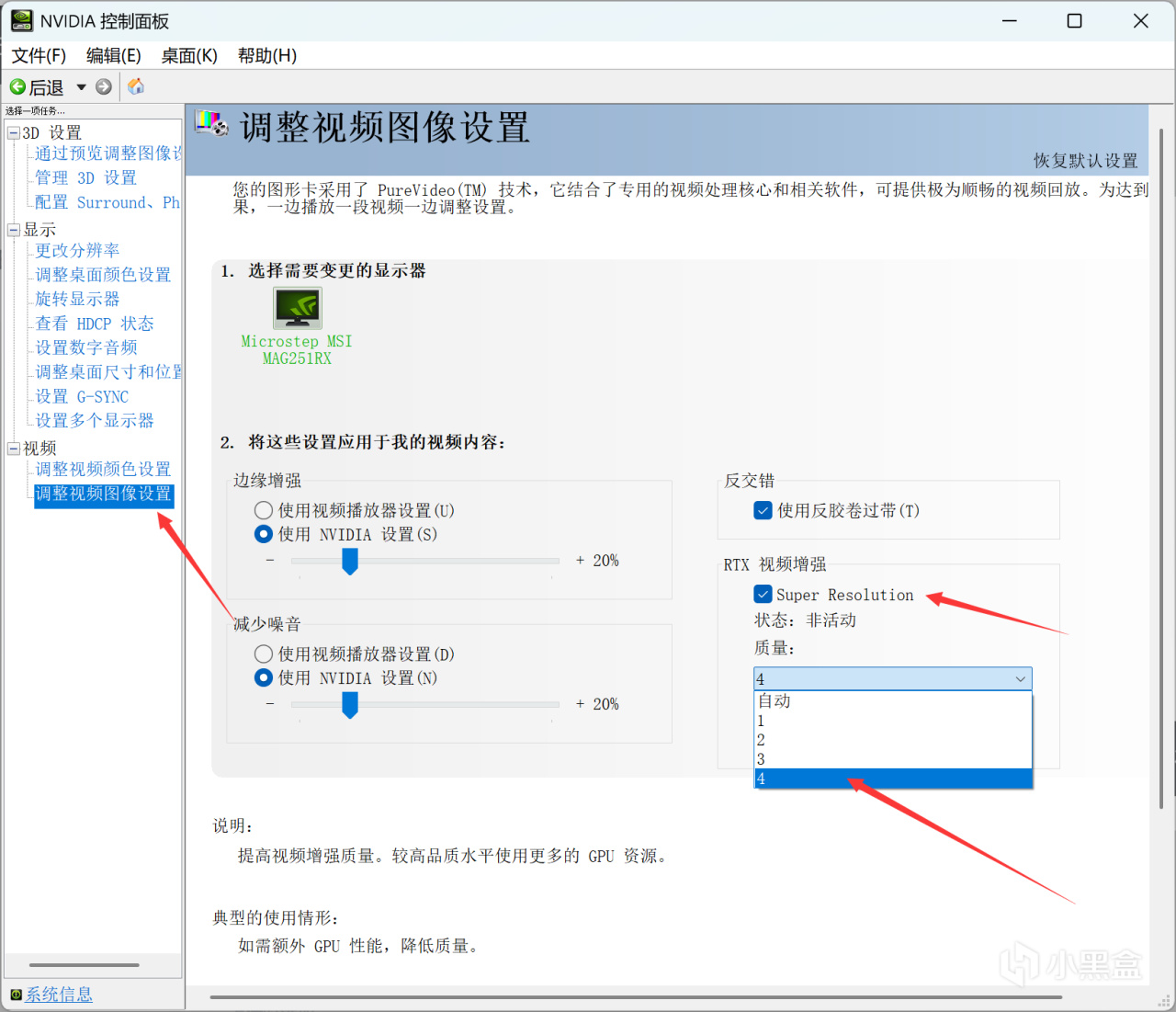 視頻增強開啓方式,顯卡不同可開啓的檔位也不同。能開多大開多大
