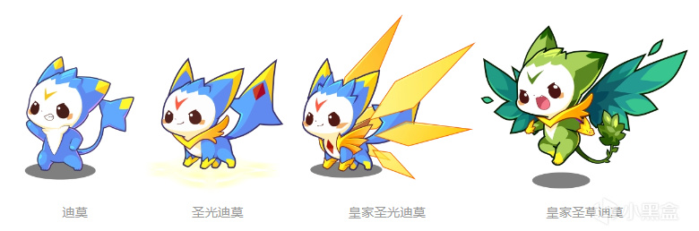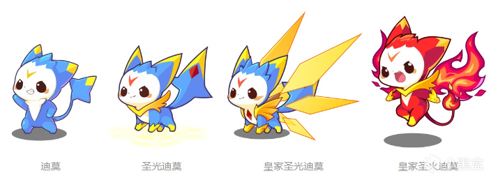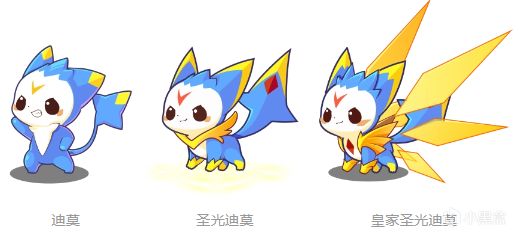 迪莫→聖光迪莫→皇家聖光迪莫→皇家聖火/水/草迪莫