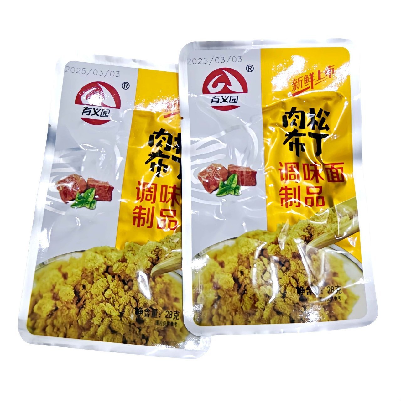 小時候一塊錢一包,在村裏唯一一個大超市裏纔有得賣,裏面是有肉鬆和辣條混在一起,喫起來甜辣口,量不大,兩口就能喫完,有時候家長沒空回家做飯,就買一包就着饅頭喫