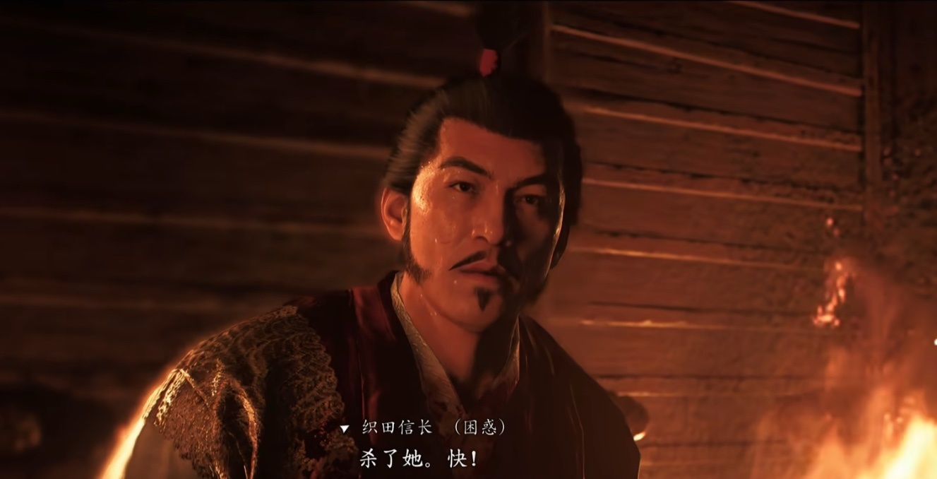 这时,奈绪江从暗中现身,和信长SOLO,就在即将打败信长之时。弥助突然杀出,直接给奈绪江按墙上了,但是一看见奈绪江的袖剑,又把人给放开了,信长还搁旁边喊呢,你倒是把她杀了啊,弥助就说我不杀,但我就不告诉你为什么,接下来,信长开始解释,我不是那个神秘组织的,你被智光秀老小子利用了,他才是那个组织的,然后就是什么智光秀老小子当不了首领,一类巴拉巴拉的废话,奈绪江听完又上头了,立马又信了(???)转头就跑了,这边信长叨叨完,拿了把短刀开始切腹自尽,hy们,要知道切腹容易,自尽难,一般日本武士切腹时,一时半会死不了。都会安排一个人,当介错人。好让死者死的没那么痛苦,而介错人一般也是死者很尊敬,或很亲近的人。你们猜谁,谁是日本第六代天魔王,搅动日本天下大事的介错人?