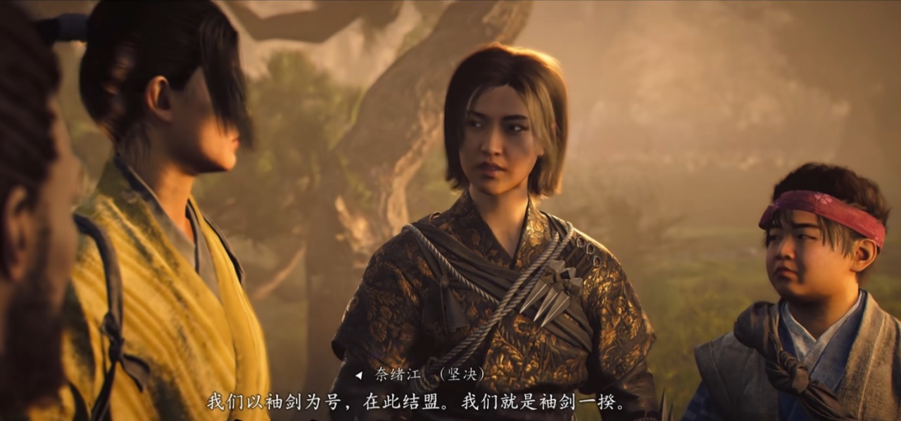 奈绪江一听,那个气呀,上来就要手刃仇人,这时小孩哥出现了,说你不能杀他,因为那个让你破了相的,又被你刺杀的武士,他就是我爹,我能原谅,你也要原谅弥助。奈绪江纠结了一下,马上就选择原谅了(wtf!?百地三太夫:我特么死得冤啊),接下来几个人还歃血为盟,原地重新成立了兄弟会日本分会——袖剑一揆