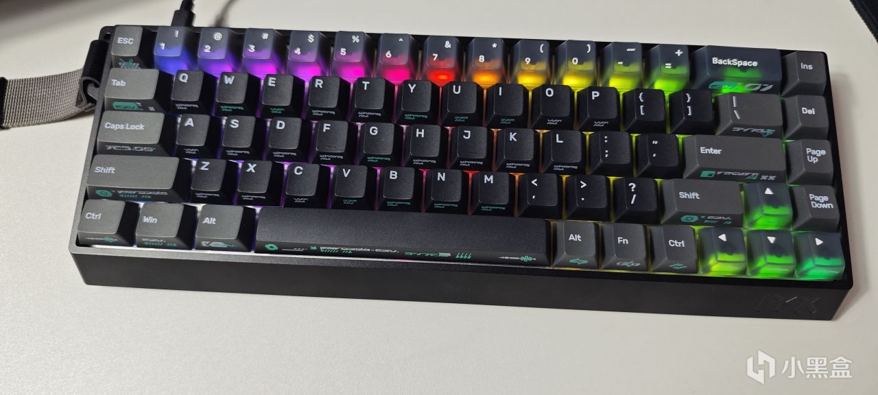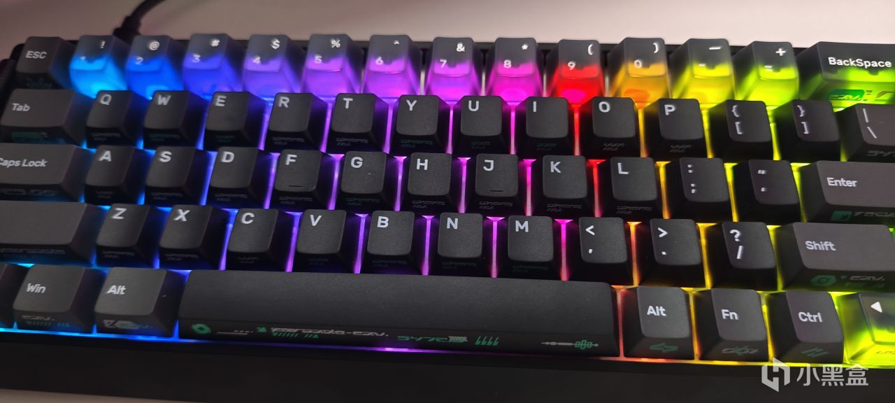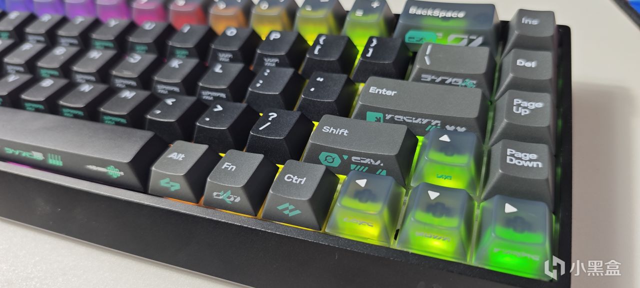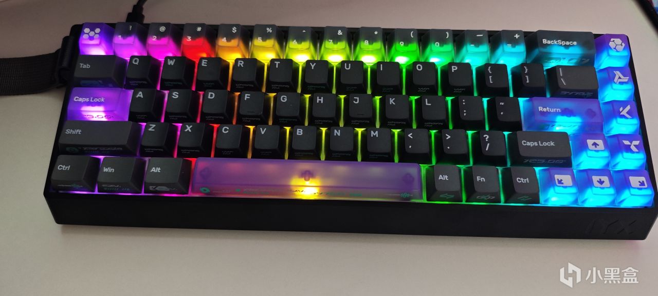 上電後,RGB燈光效果通過PC鍵帽發射出來,顏值更加多彩絢麗。