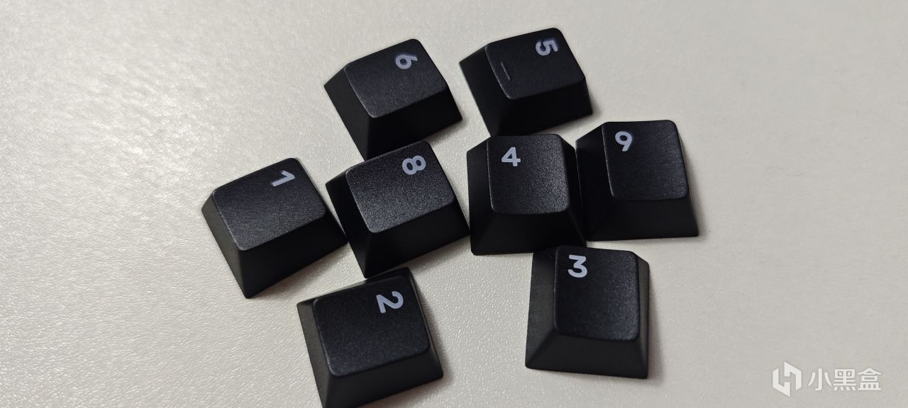 鍵帽類型分爲2種,一種是基礎的PBT材質鍵帽,PBT含量65%-70%。PBT表面摩擦係數高,手感更好,表面可以很細膩,無需做粗糙來增加摩擦係數。耐磨性更高,PBT不容易打油,長期使用不易變形。