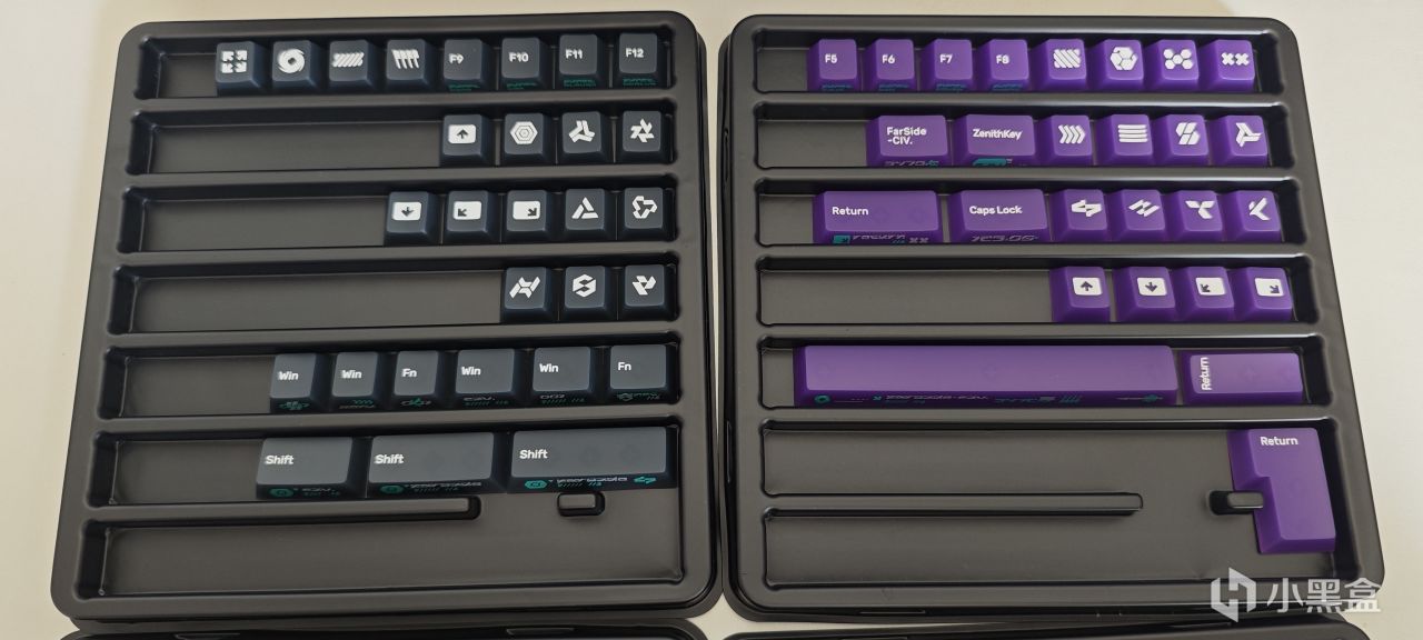每個大包裝裏面都有2層鍵帽,一套是鍵盤的基礎鍵帽,還有一套是半透鍵帽。