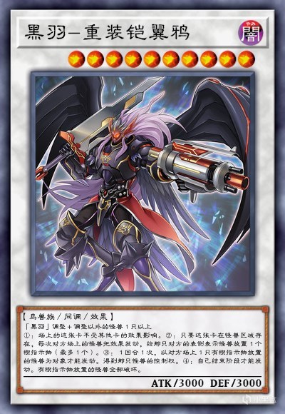 而说到黑羽,自然也少不了全抗大哥重装形态的铠翼鸦。重装铠翼鸦不受其他卡的效果影响,正好可以规避仟年十字弹回怪兽卡的效果。