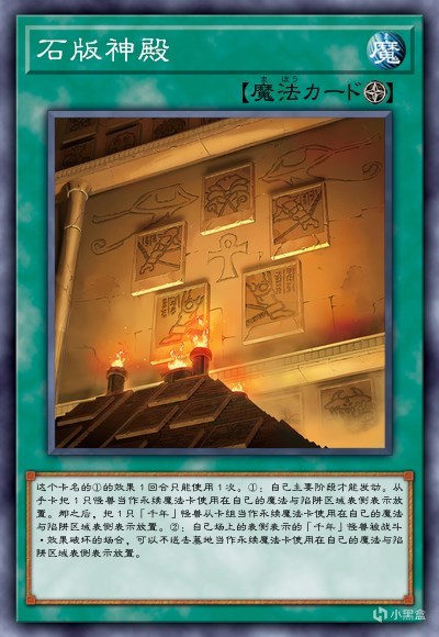 需要注意的是古妖龙检索场地魔法的效果发动前,需要先炸掉场地区域的卡才行。所以玩家在召唤古妖龙之前,这边最好先把石板神殿发动到场上。