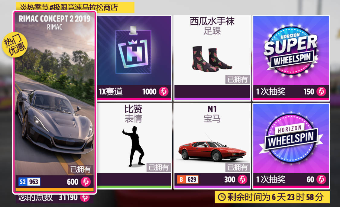 本週更新車輛爲2019款RIMAC CONCEPT TWO1981款寶馬 M1。兩輛車都是車展車,Riamc推薦拿來跑每週S2的特技賽,兌換與否看個人需要。