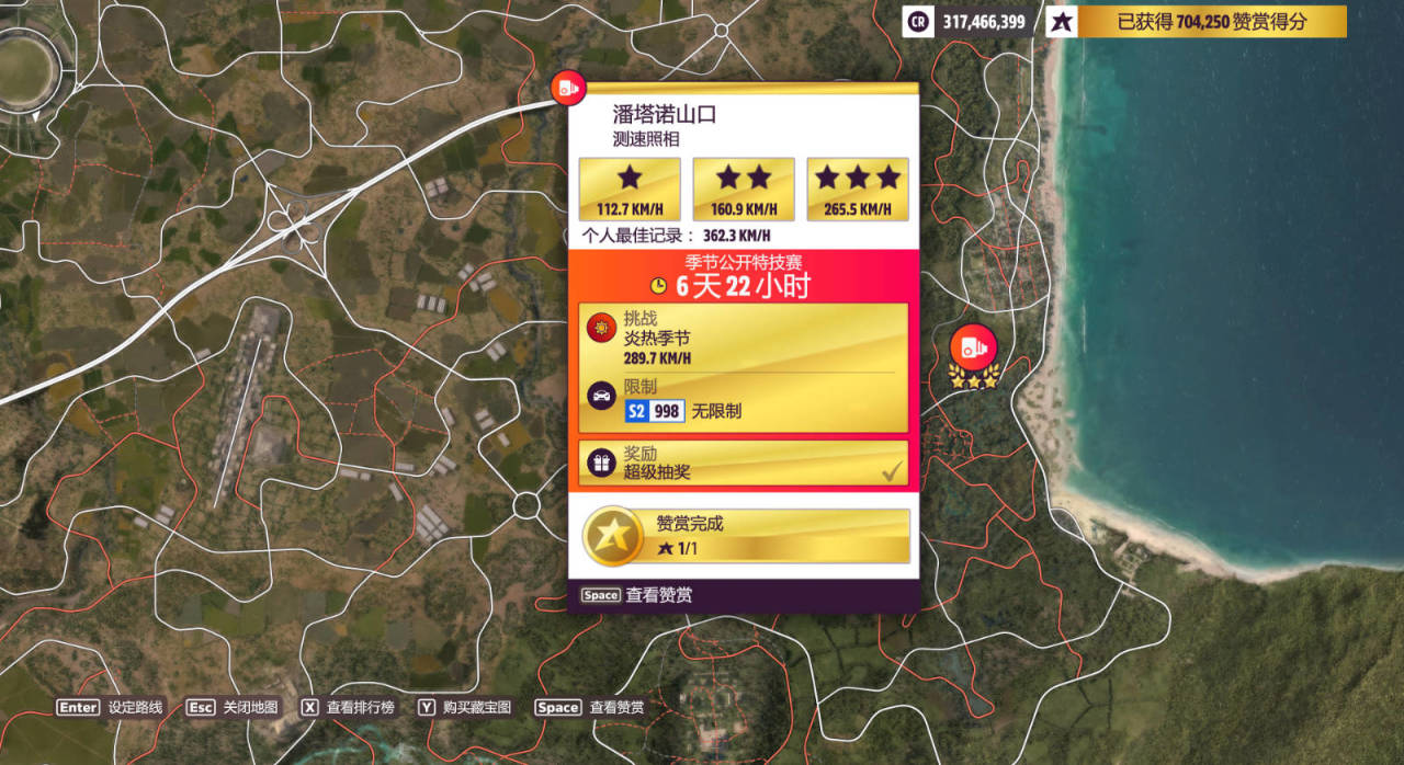 測速照相:潘塔諾山口,完成獎勵爲超級抽獎。(從左邊進,拉遠點)