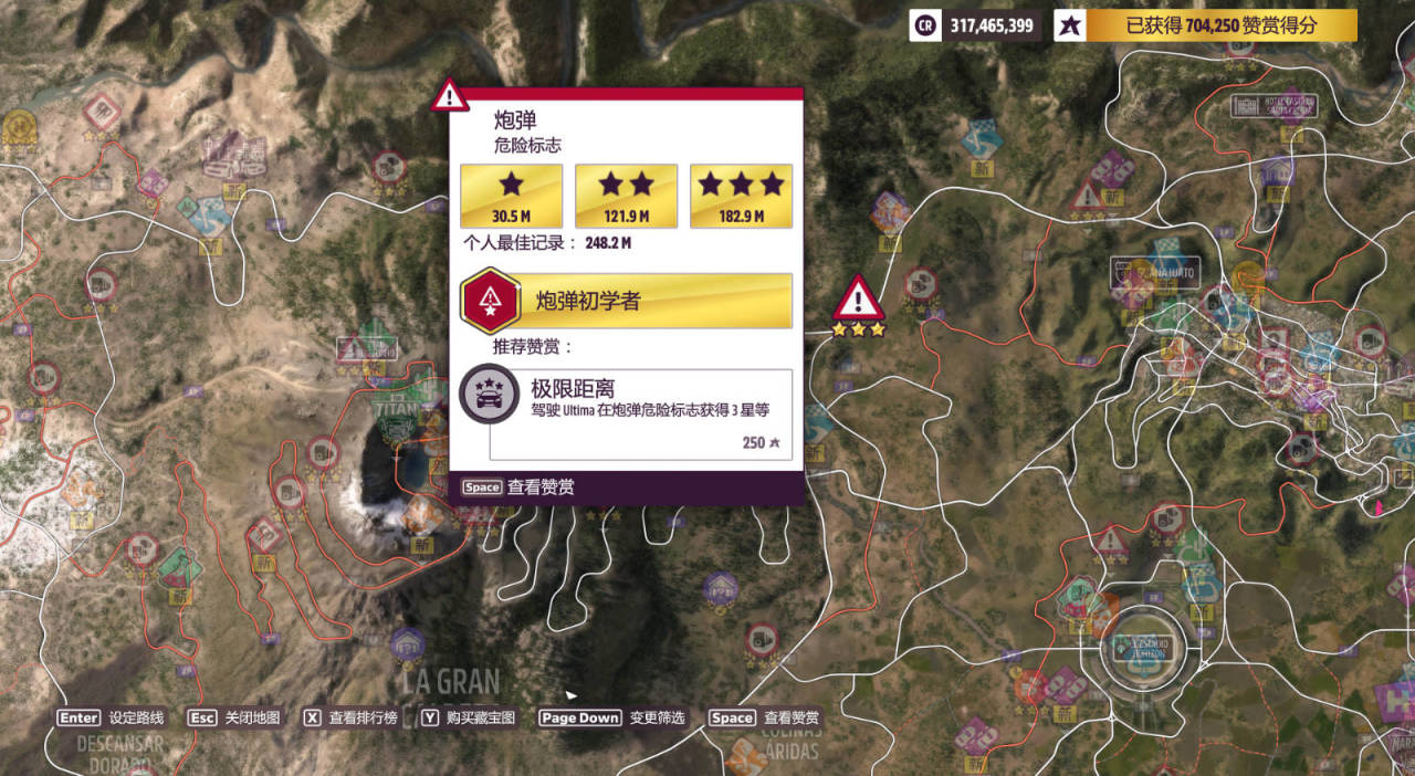 • 駕駛任意車輛在危險標誌累積獲得6星等(還是推薦“炮彈”危險標誌)