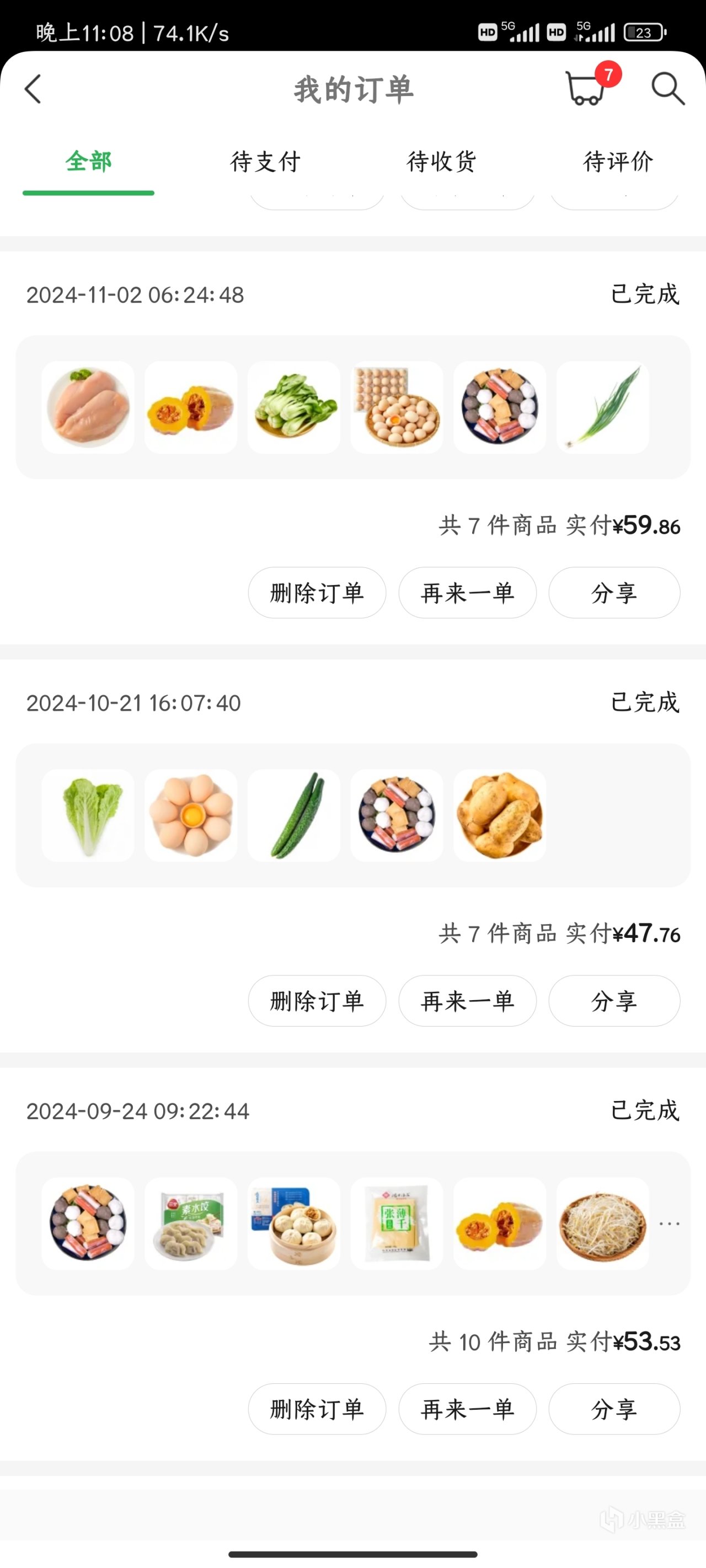 注意看购买的间隔时间,中间我没有点过一次外卖(拼好饭都太贵
