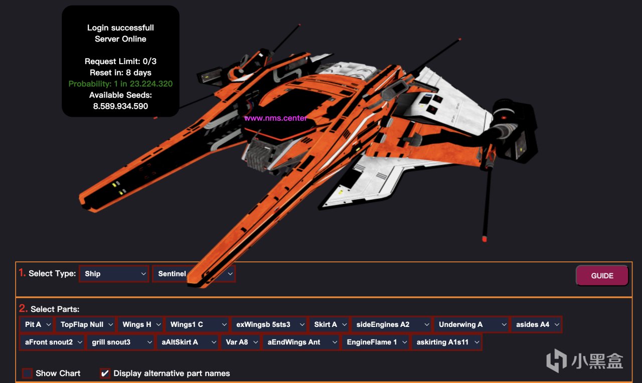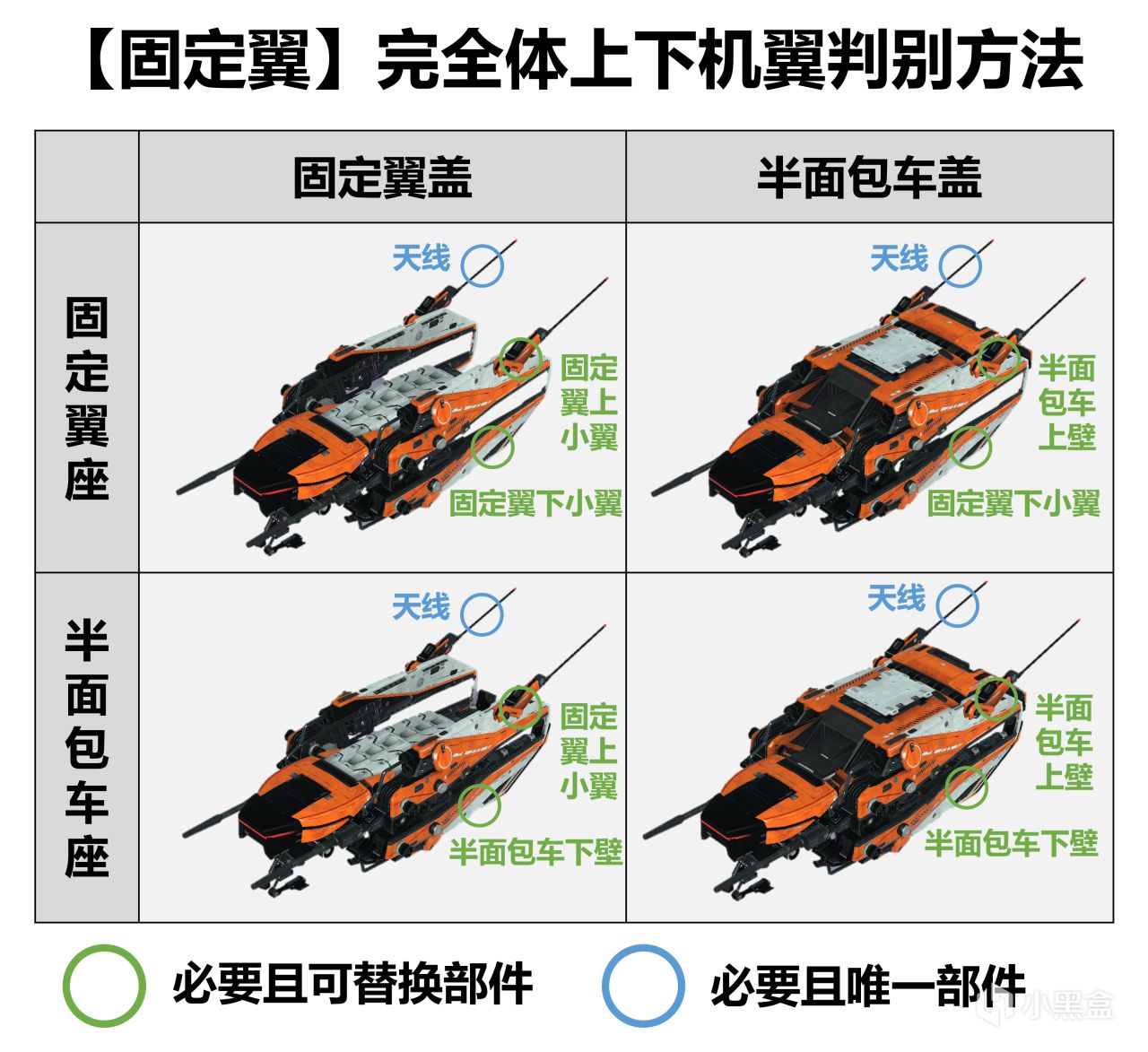 由固定翼(Carriage A)生成的完全體“半面包車”與由大X翼(Carriage B)生成缺上下前翼的“半面包車”在遊戲中無法區分,可以通過定製網站分析攔截機種子獲得部件的方式判斷