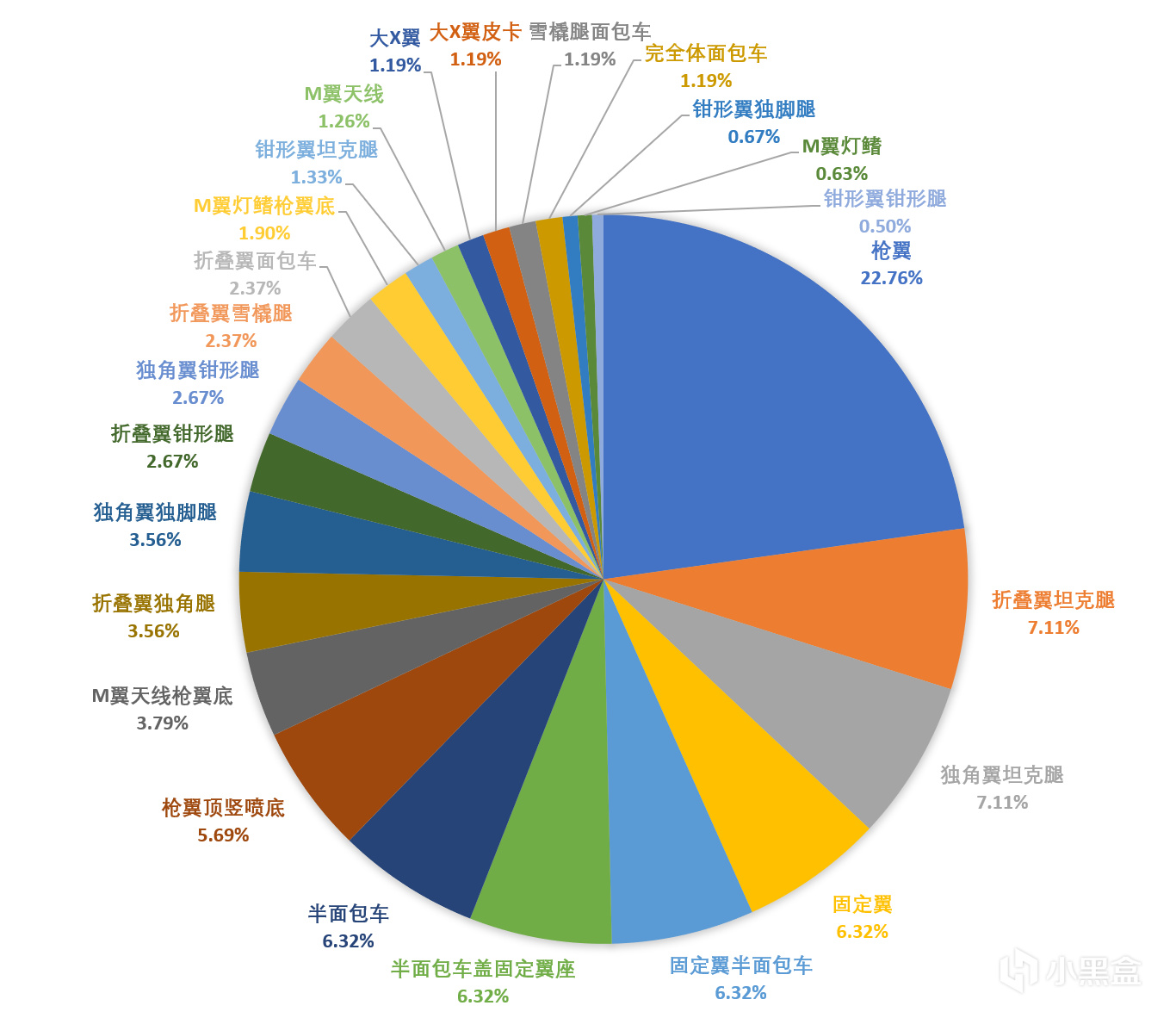 其中11.4%的是槍翼和豎噴的拼接體,12.7%的是遊戲中無法區分的半面包車(半面包車底座/固定翼底座)。