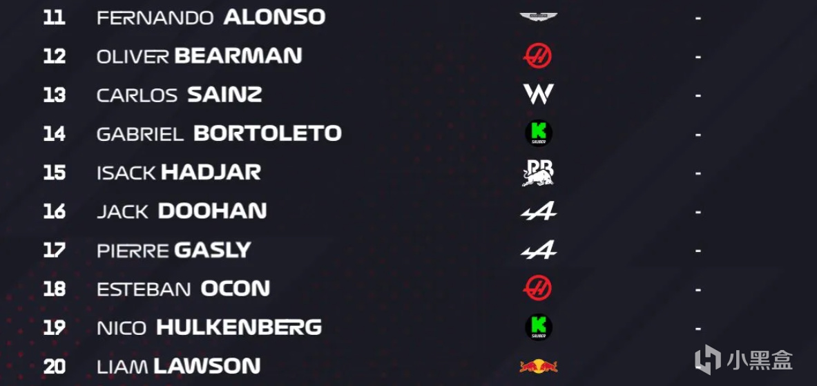 接下来是本周的冲刺赛排位赛,SQ1冲刺赛排位赛第一节,车手们统一使用中性胎进行飞行圈。首轮飞行圈后,迈凯伦车手皮亚斯特里以 1:31.723 暂列第一,阿隆索落后0.398秒位列第二,汉密尔顿暂居第三,角田裕毅、塞恩斯等车手一度处于淘汰区边缘。