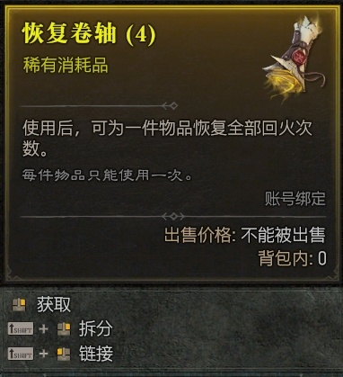 可能會出現運氣不太好的現象,回火六次都沒有出現適合的詞條,這時我們就可以通過恢復卷軸使回火次數恢復到6次