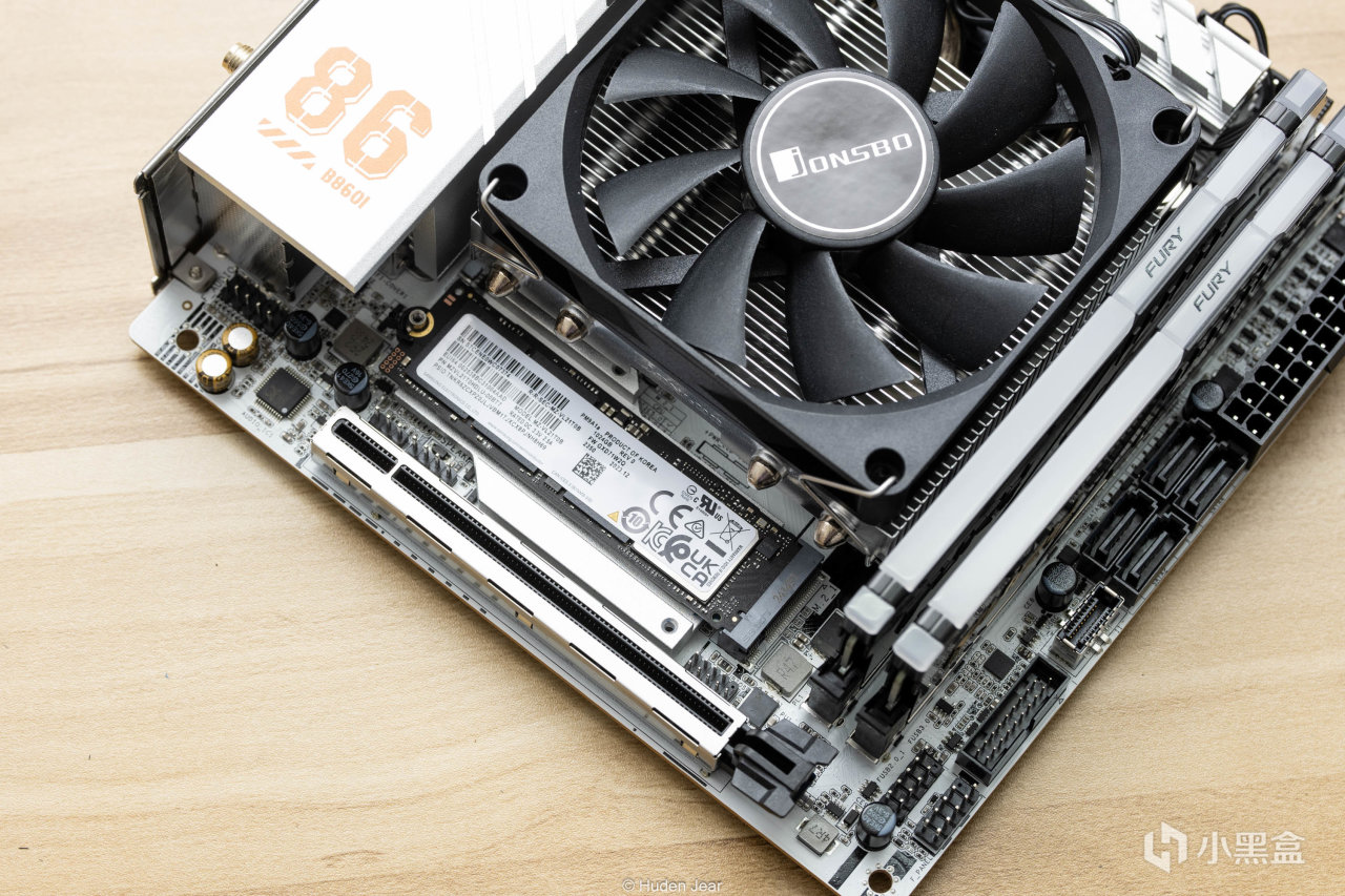 裝一下硬盤,這個硬盤是朋友她之前主機的硬盤,準備直接遷移過來,這個三星的pm9a1性能也是相當可以,能跑滿pcie4.0的帶寬,4k隨機也高。裝完這些配件之後主板就準備就緒了,下面就放進機箱
