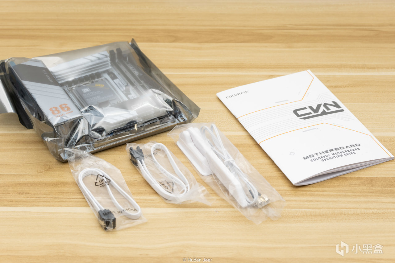 主板配件比較簡單,有兩條SATA線,還有一個白色的WIFI天線,這種小細節上做的很好