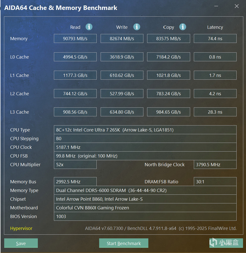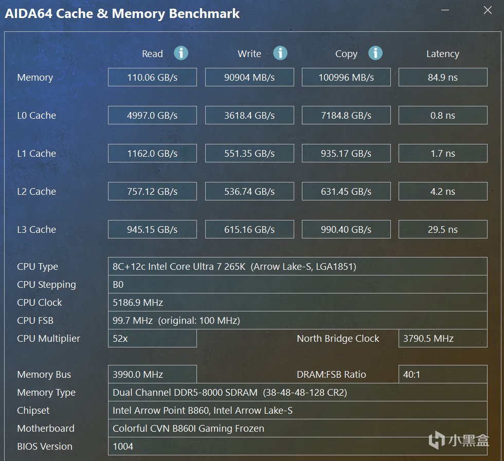 內存直接打開XMP就能到6000MHz,我覺得這是目前DDR5最爲經濟的一個頻率,不管是AMD和intel都能輕鬆開到,而且性能和極限超頻並沒有太大區別。而七彩虹這塊B860I實際上超頻空間很大,如果內存允許的話,起碼能跑上8000MHz,我拿我自己8000MHz的條子試了一下,基本就是秒開