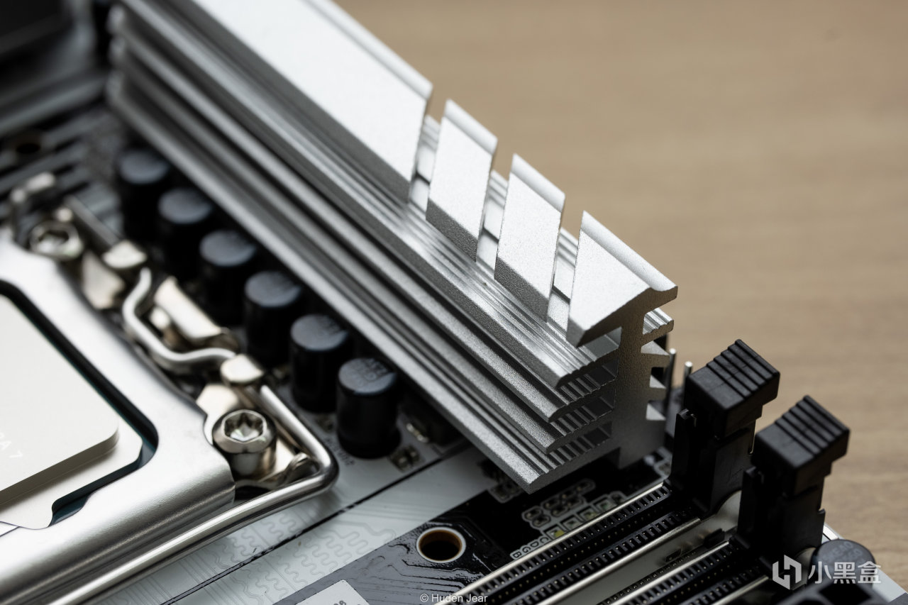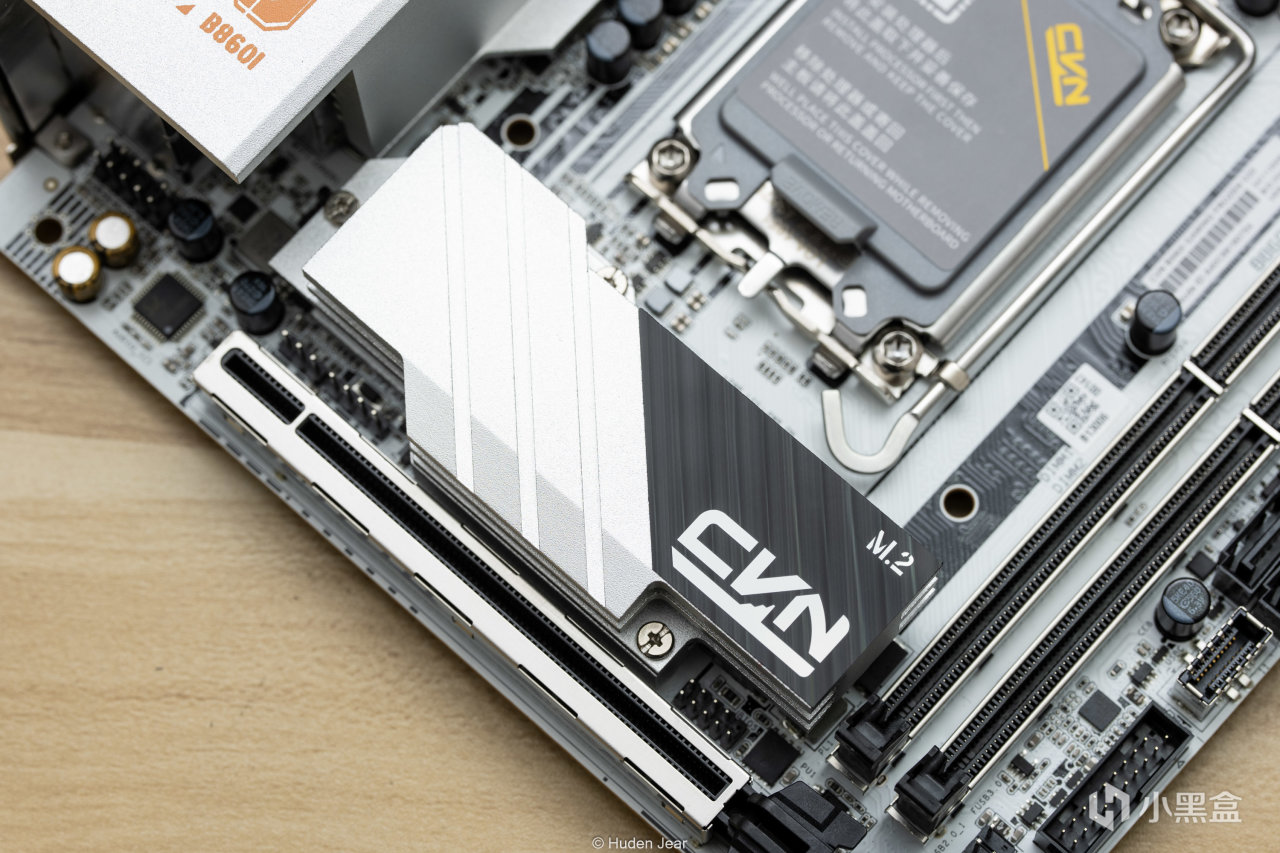 主板上的散熱馬甲規模很大,上面有特殊的紋飾標明型號,CVN主板的做工也是越來越好了,跟之前幾代有很大的進步