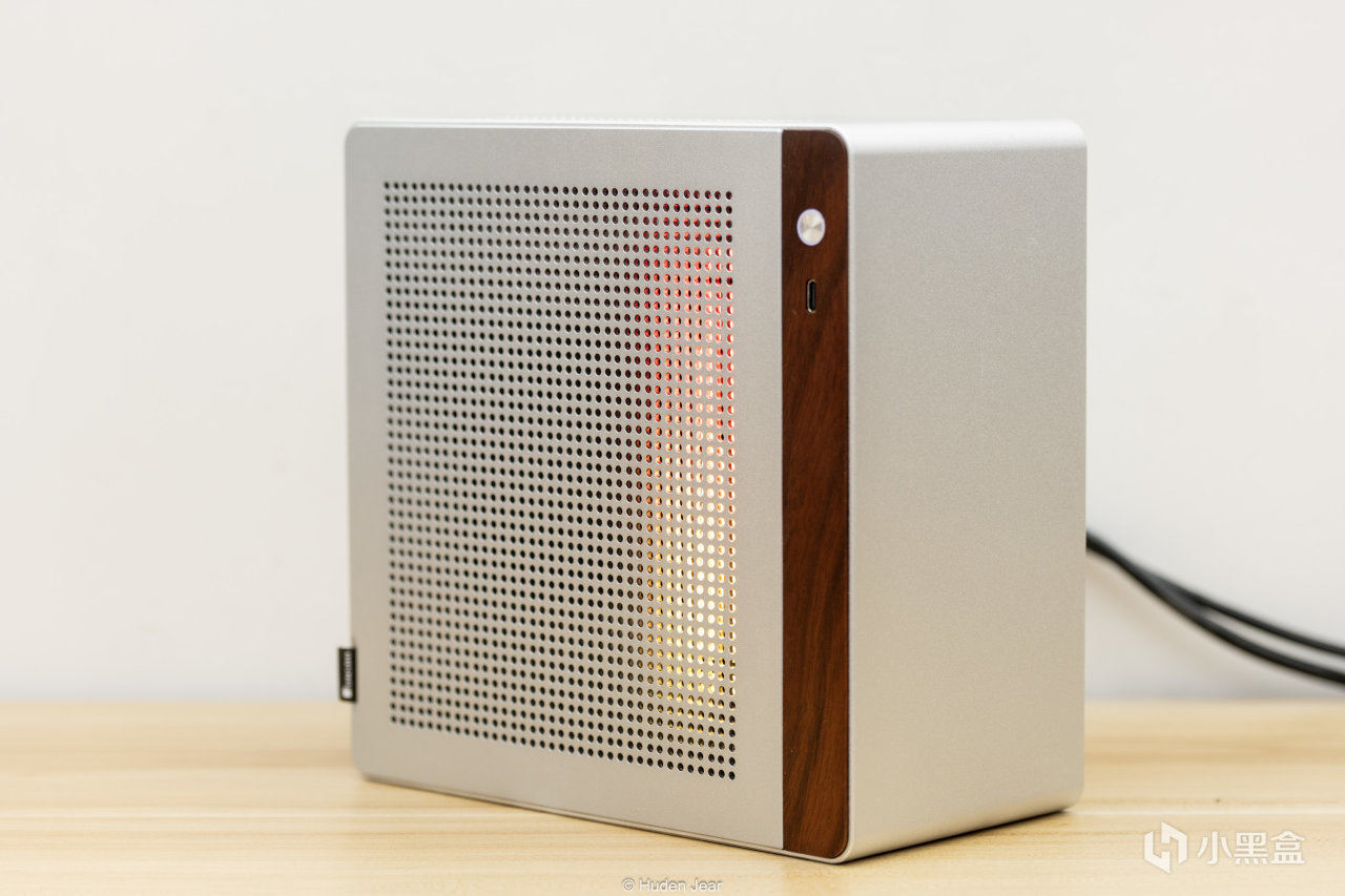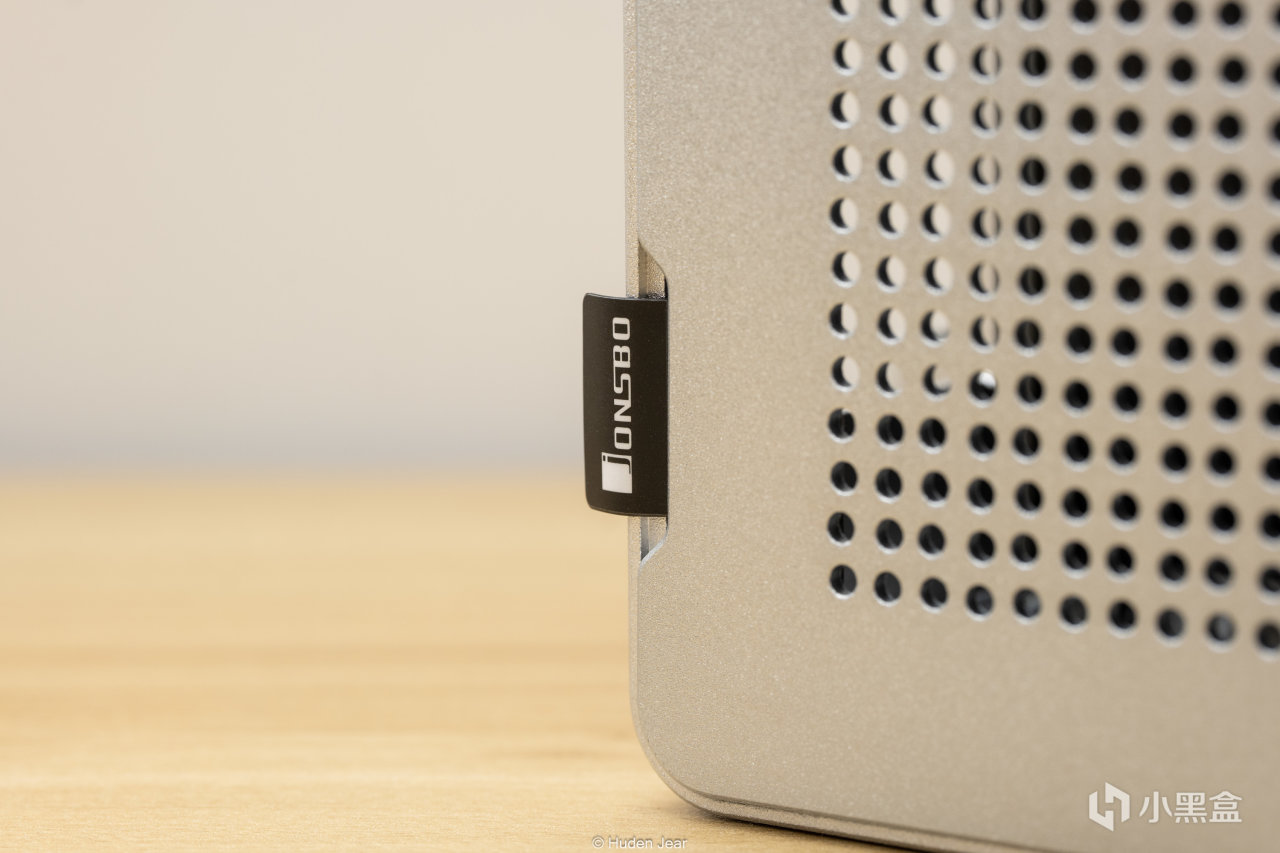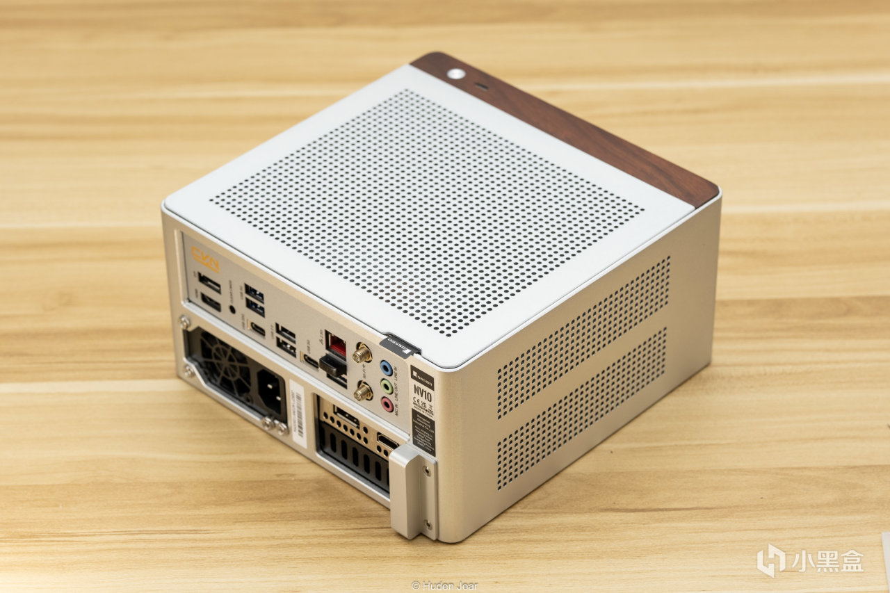 NV10整體爲銀色,IO接口的地方有一塊木質的裝飾,設計風格很現代,顏值是選他的原因之一
