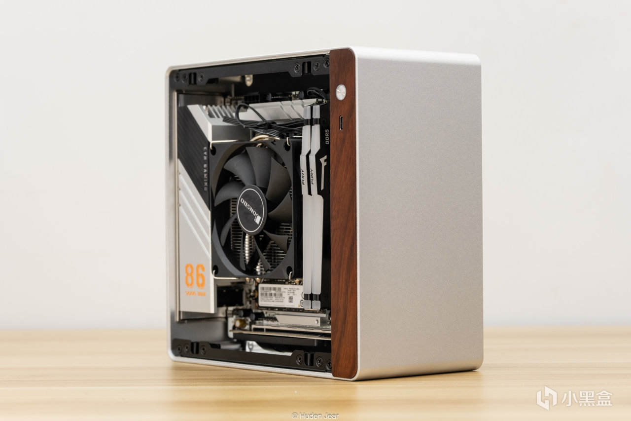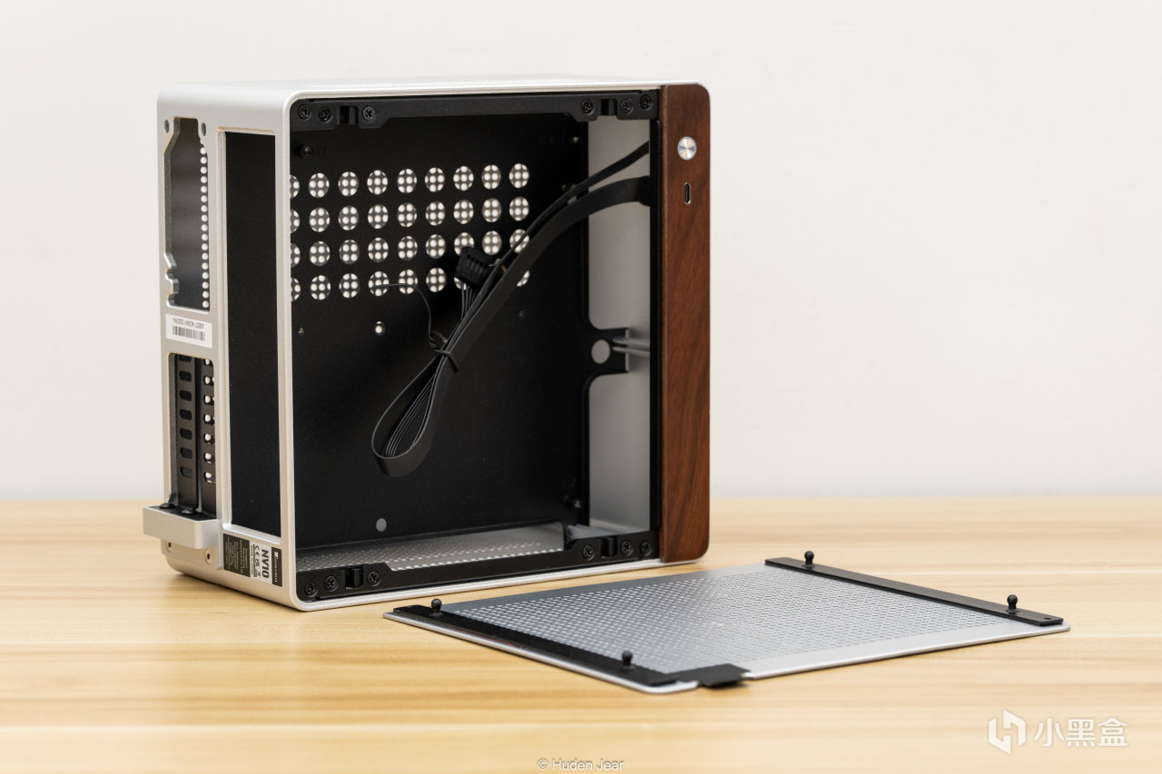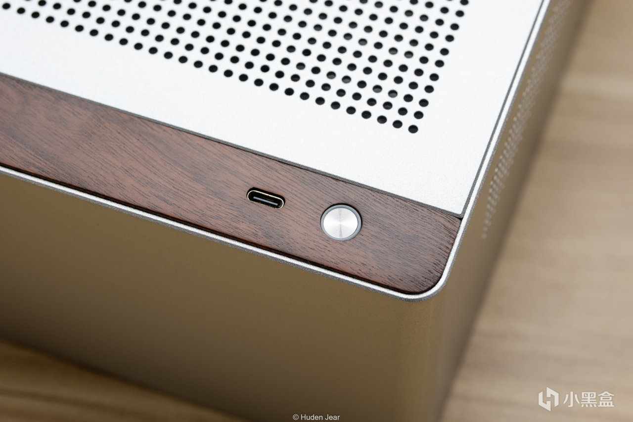 機箱沒有側透,畢竟側板下面就是風扇,不過我覺得外觀好看就是王道了,銀色鋁磨砂表面+木質裝飾,一個字,雅!