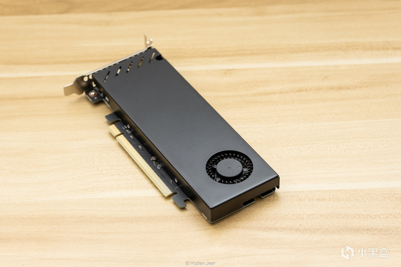 使用的顯卡是一張單槽半高的RTX4060,這張顯卡是九魂的工控顯卡,拿來手裏還挺壓手,做工挺好。我考慮過買雙槽半高的4060,但是看完各種測評之後放棄,因爲雙槽顯卡離面板太近的話噪音很大,還不如直接單槽,留足和側板之間的距離