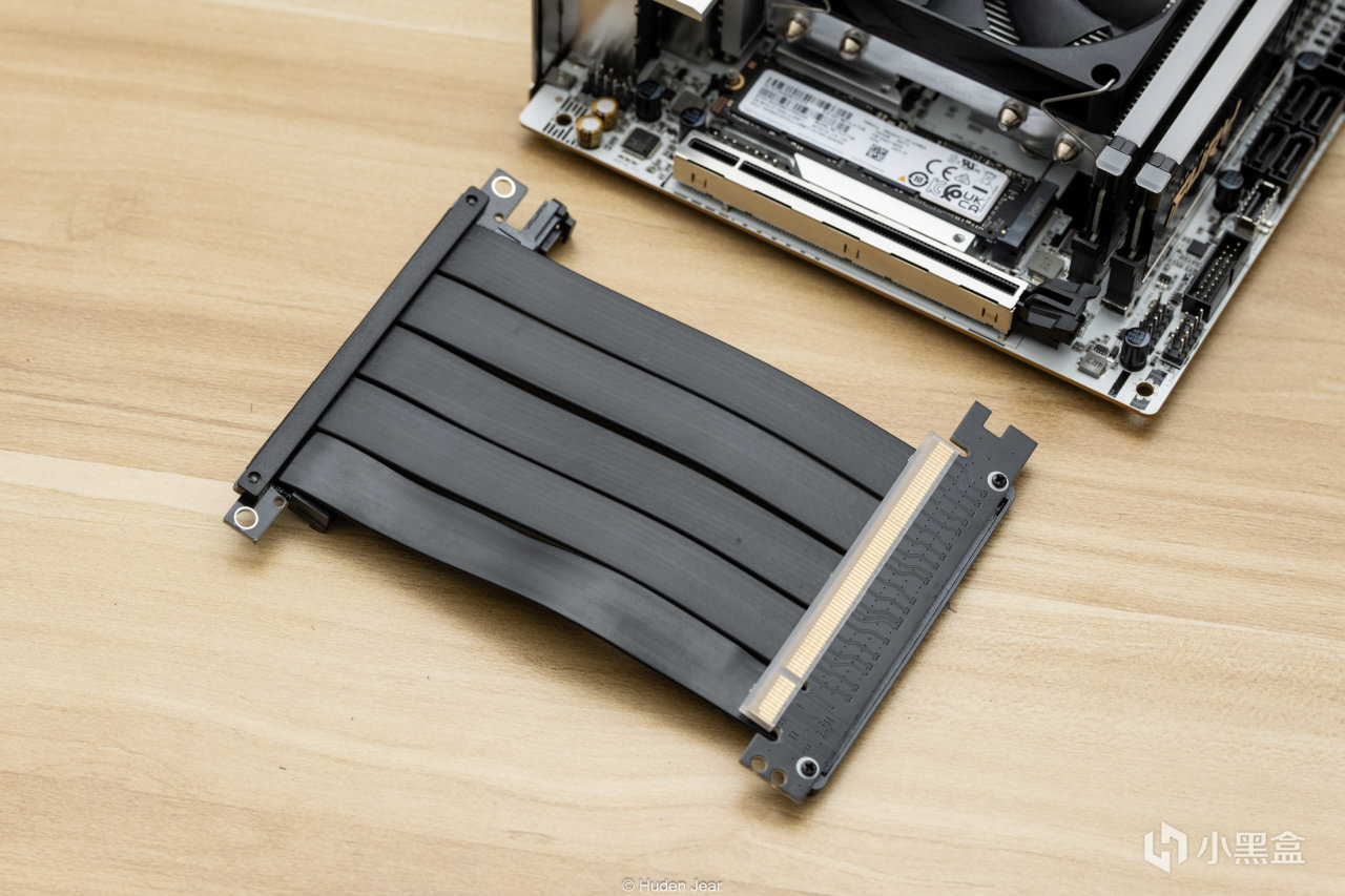 下面放進主板,然後接入延長線和其他連接線比如USB和TypeC的線,以及開關跳線。隨後固定顯卡延長線到背面,這樣主板和機箱鏈接的部分也基本完成