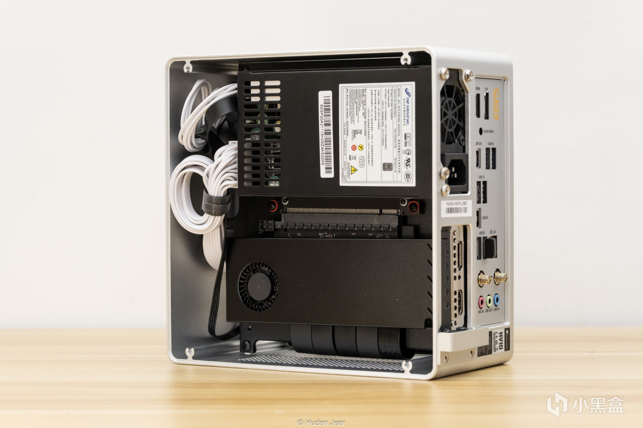 機箱體積基本約等於20x20x10cm,非常小的一臺機器,但是作爲代價,機箱只能裝半高顯卡,並且只能用flex小1U電源。我很早之前也用過背靠背結構的機器,那時候爲了flex電源可花了不少錢,但是現在很多國產方案和改件都出了,所以價格也不貴,不用顧慮配件溢價