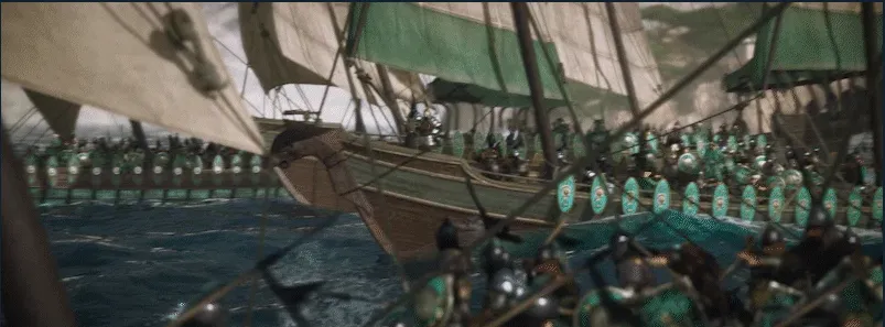 玩家可以從18種以歷史船隻作爲原型的船型中進行選擇,每一種船都有着獨特的操控性能,且受到逼真的風浪物理效果影響。這些船隻可以配備攻城器械、貨艙、船帆、撞角等,讓你進行定製改裝。船塢會根據所在城鎮的文化和發展水平建造並儲備船隻。玩家也可以在戰鬥中繳獲敵人的船隻和艦艏雕像。