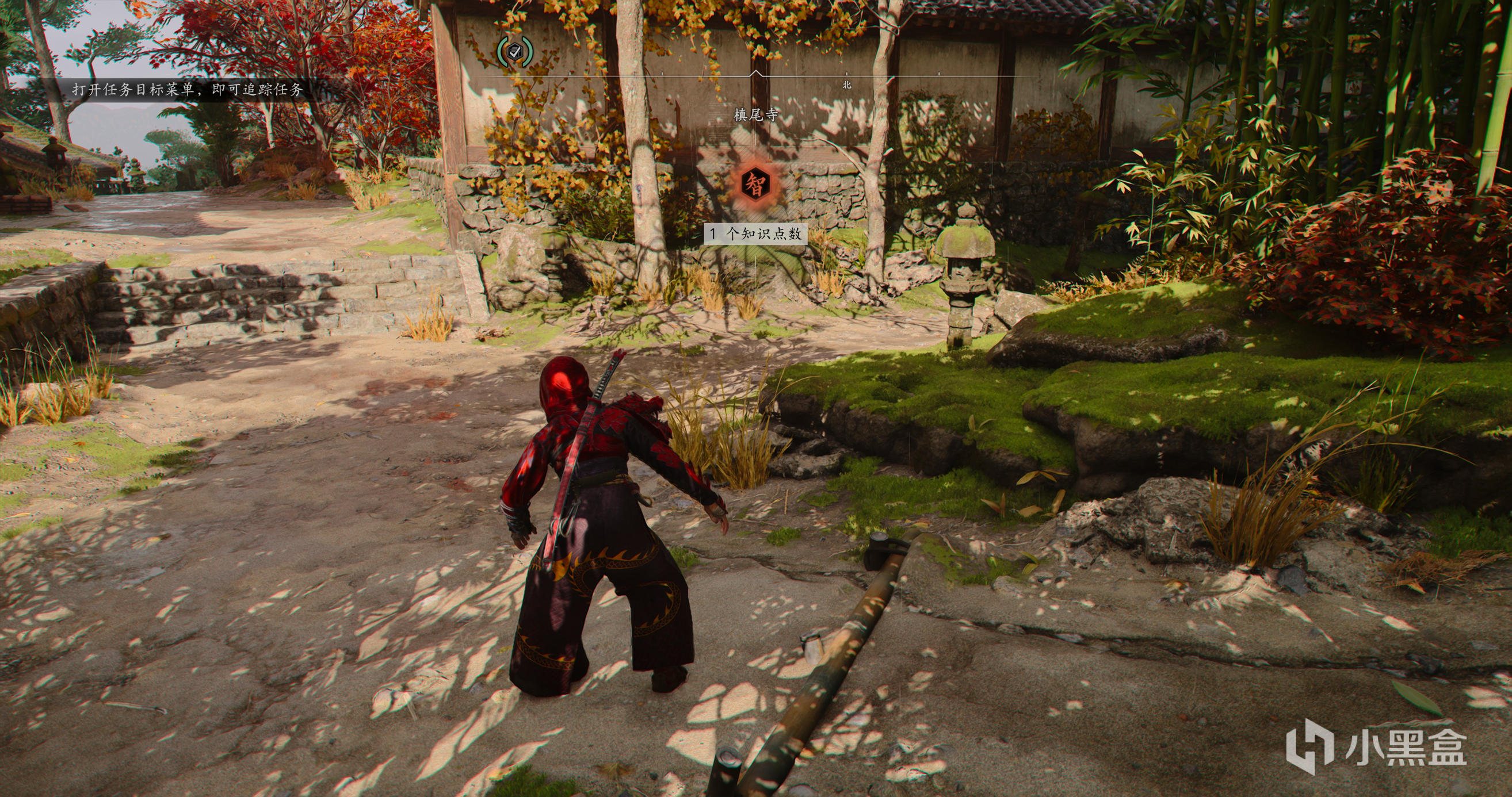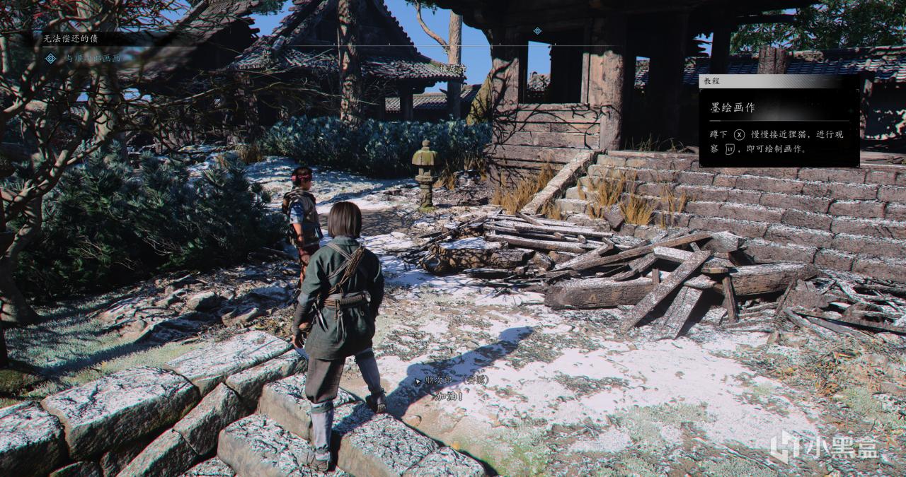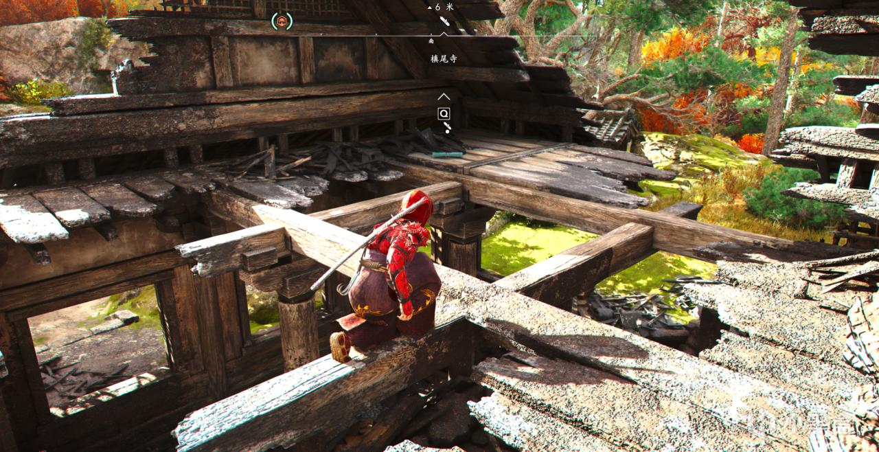 本作也有大量的收集任务,槙尾寺需要收集3个失落的卷页,和顺次郎画完画后,狸猫处有第一个卷页,他会让我们去劈竹子,劈竹子路对面地上蜡烛旁边可以拿到第二个卷页,这两个很容易找,狸猫旁边这个破庙二楼可以拿到第三个卷页。