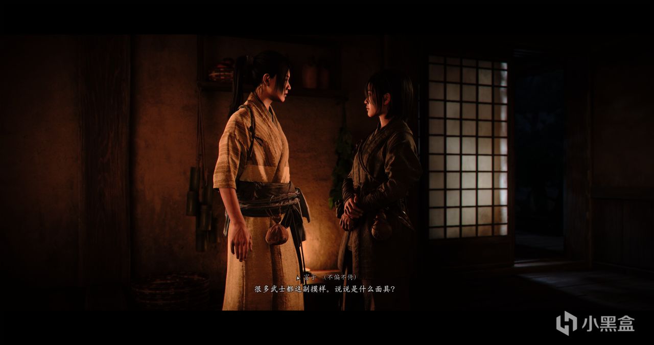 父亲藤林正保赶过来骑马带着女主跑,他告诉我们让我们去找富子帮忙,我们醒来后在富子家中,把面具给她看,她告诉我们可以去交野找找线索。