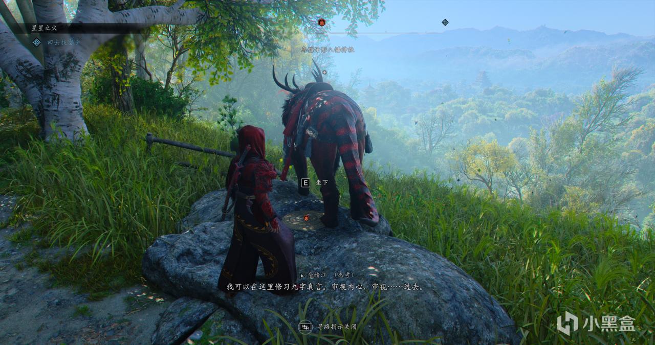 笔者提醒:本作的打坐冥想是关键机制,需要在非战斗状态下触发,找到特定的冥想点互动,然后就会传送到一些不同时间线的支线任务,一些历史地标冥想时还会触发战国名人的回忆片段,非常有意思。
