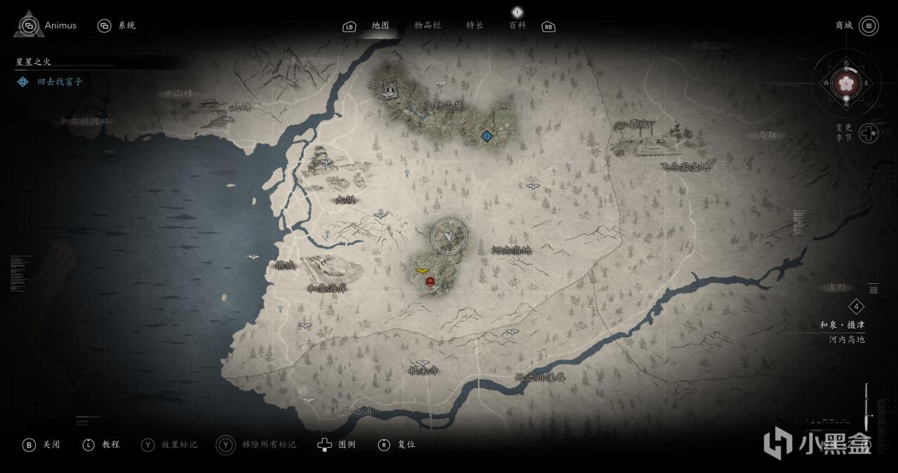 无父僧人教如的位置在堺城南边这个方位,可以不急着去做,把下面沿途的支线和古坟任务做了。