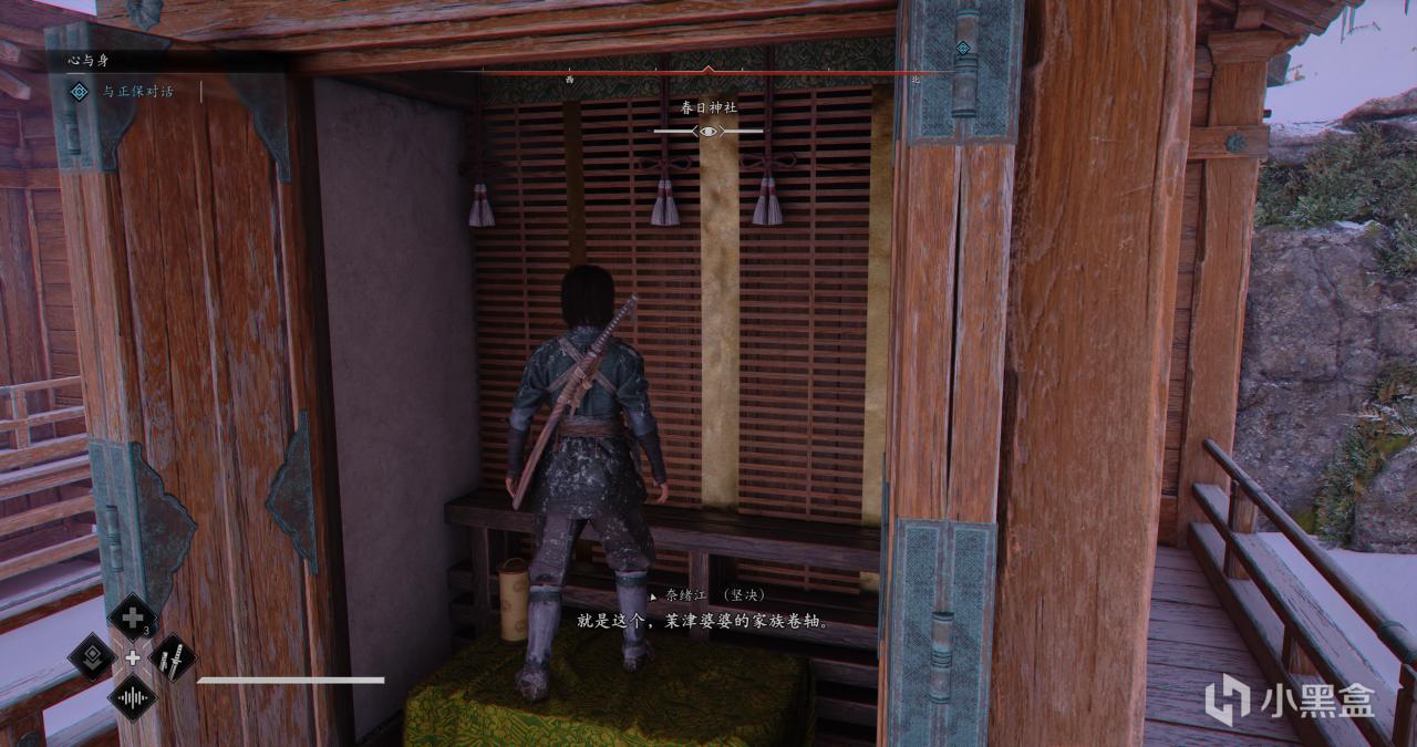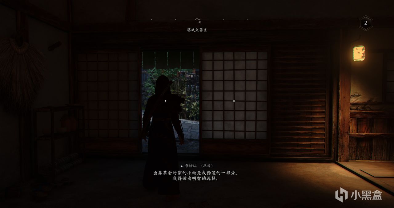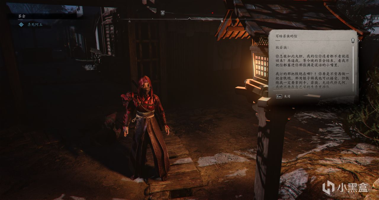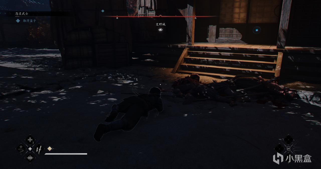 根据目标任务指引,来到最后一个盒子,可以投掷苦无暗杀目标,进入房间内还有敌人,可以吹口哨把人引出来,再在背后暗杀,最后一个盒子在围棋盘旁边,但仍然不是我们要找的盒子。