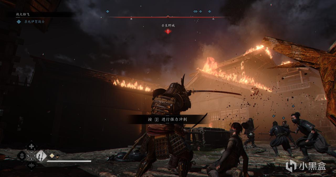 我们一路进城,会遇到一些阻挡我们的们,直接按Shift撞门,目标是进入壬生野城然后触发CG动画,这场战争应该是1581年的第二次天正伊贺之乱,伊贺最终被织田信长夷为平地。