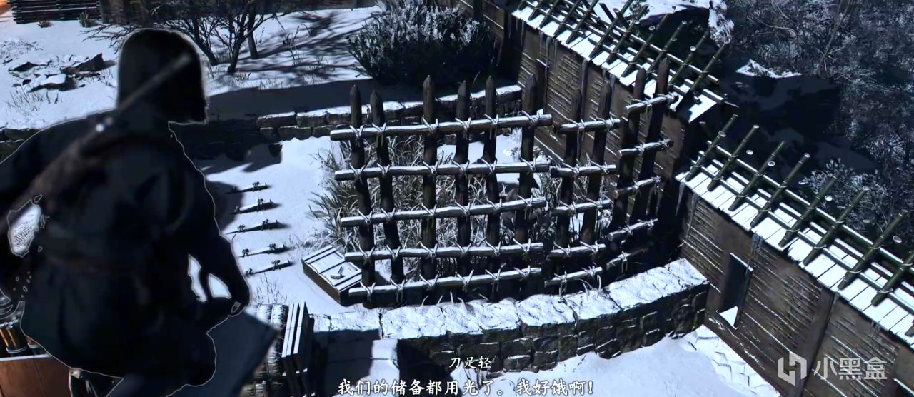 接下来比较考验勾锁的应用,我们顺着任务方位潜行进营地。